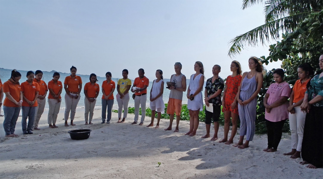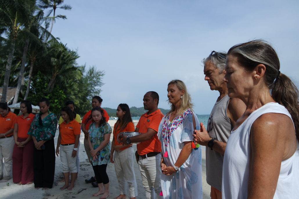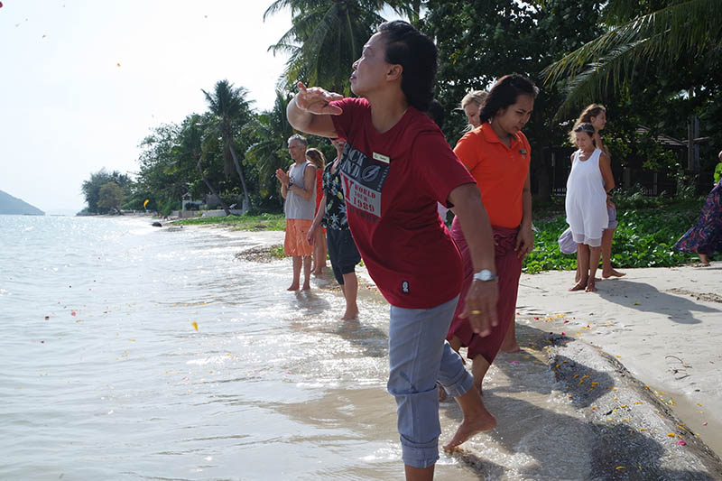 Within time Dorien and Dave, as a young happy couple much in love, decided to marry, a celebration, presided over by our own Irish Jack, held in the main yoga shala, where I got to walk Dorien down the yogic aisle to hand her over to Dave to keep, love and cherish. At the same time we recorded Samahita Live where Dave played the harmonica, then and at many New Years events at Samahita. As the years went on Dave transformed the tropical garden at his and Dorien’s house and took many a Samahita guest on a walk along the beach to temples that stand at this southern tip of Koh Samui.