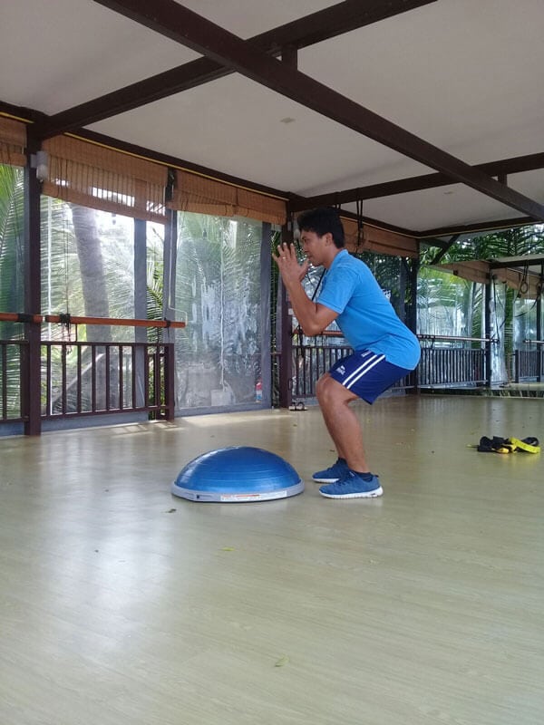 Exercise 1: Bosu Squat Jump into Plank and Push up